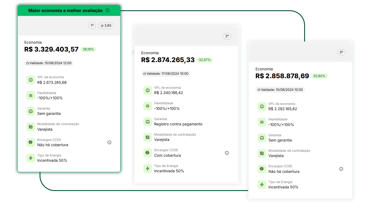 Em nosso marketplace próprio, a sua empresa recebe dezenas de proposta em menos de 24 horas! Elas são ranqueadas por diferentes critérios como preço e qualidade do fornecedor, e, com essas informações, indicamos as melhores opções para seu consumo.